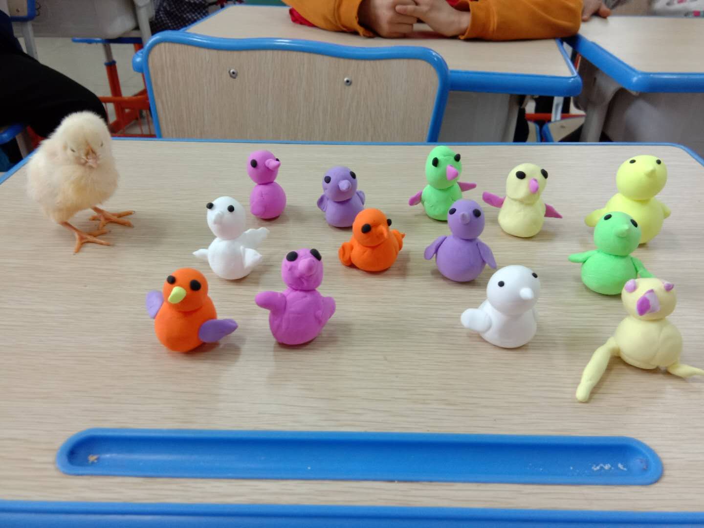 手工課上,孩子們先觀察小雞的外形特點,顏色以及叫聲,然后用橡皮泥來制作小雞,孩子們的積極性和參與性都非常高,讓我們一起來欣賞一下孩子們做的小雞!