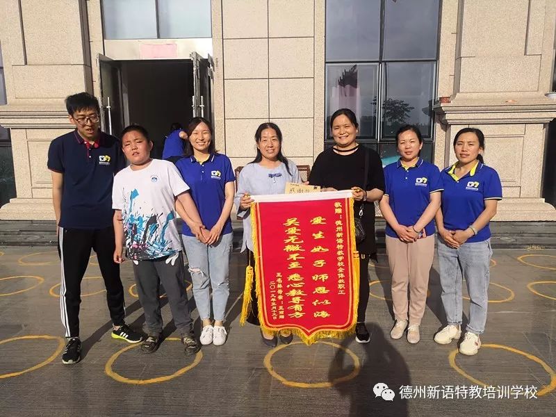 林林今年13歲了,正值青春期,情緒波動很大。每天都非常抗拒進校門、進教室、午餐時間常常發(fā)脾氣不吃飯。于是學校的暖男“救火員”小侯老師迅速到位,安撫林林的情緒。在小侯老師的幫助下,林林現(xiàn)在可以在教室內(nèi)跟隨老師一起上課,情緒也有了很大改善。媽媽為了表示感謝,特地為學校送來了感謝信和錦旗。