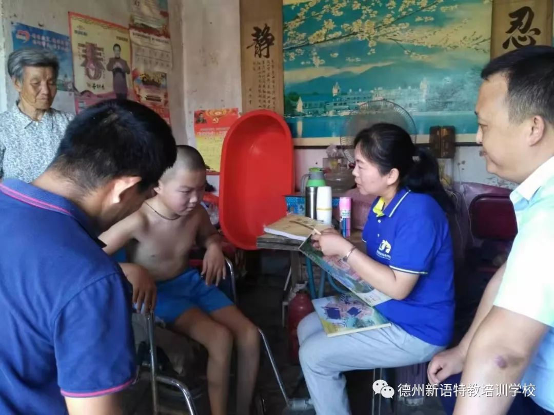 2019年7月24日,在武城縣退役軍人事務(wù)局彭國祥主任的引薦下,德州新語的曲風(fēng)英老師和劉彥增老師來到武城縣四女寺鄉(xiāng)祁莊村,為村里的一名15歲多重障礙殘疾的孩子建建開展送教上門工作。