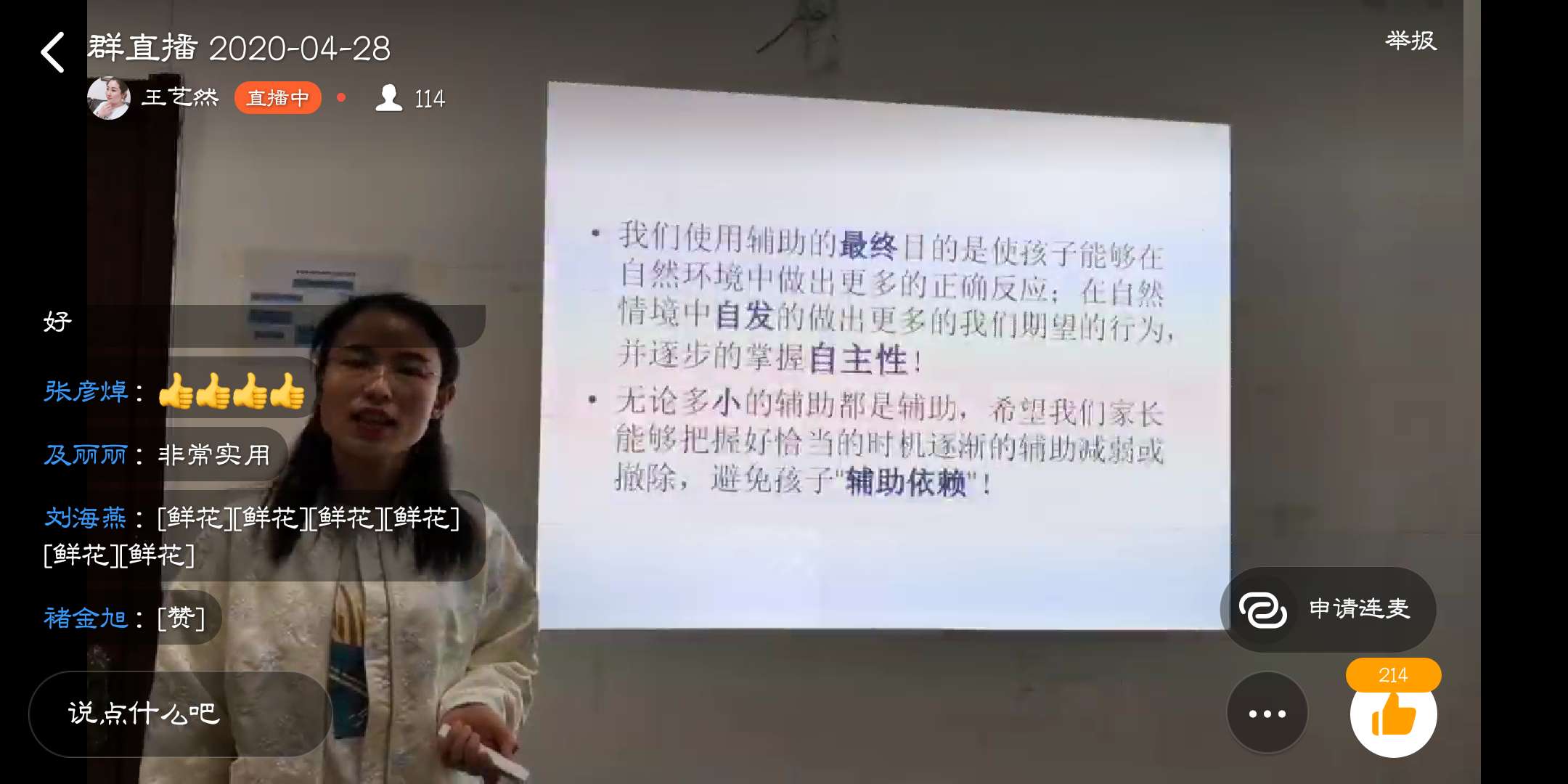 李老師運用大量的實例,教孩子提要求打開包裝、輔助孩子繪畫,讓孩子自己倒水等直觀的視頻示范,深入淺出的講解了什么是輔助,什么時候使用輔助,應(yīng)該怎樣撤銷輔助。