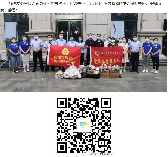 2020年6月28日上午,德州農(nóng)商銀行資產(chǎn)經(jīng)營(yíng)中心黨支部張旭經(jīng)理、董峰濤書(shū)記一行,德州市眾信公證處樊振柯書(shū)記一行共同來(lái)到德州新語(yǔ)特教培訓(xùn)學(xué)校北校區(qū),為孩子們帶來(lái)美味的粽子和學(xué)習(xí)用品。三位校區(qū)負(fù)責(zé)人:于娟老師、曲鳳英老師、王藝然老師全程陪同。