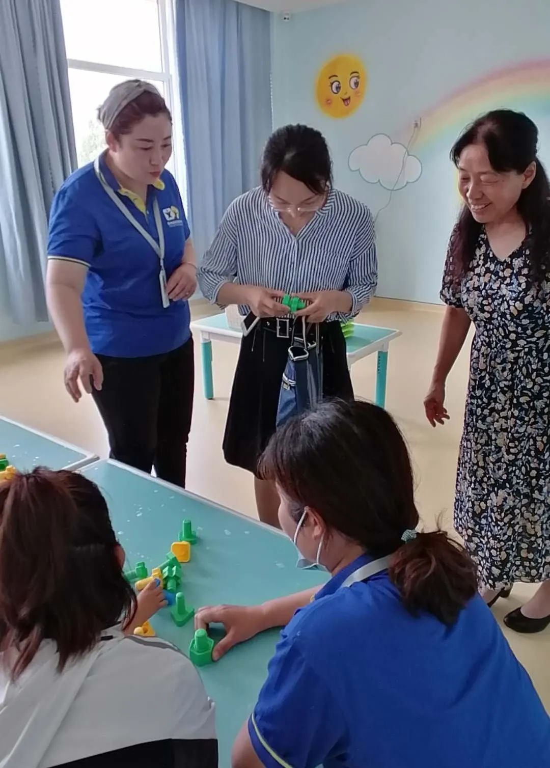 7月7日上午,市政府督導(dǎo)組—德州市教體局基礎(chǔ)教育科張娜老師在經(jīng)濟(jì)開發(fā)區(qū)教體文旅部辦公室王莉老師的陪同下,走進(jìn)德州新語(德州市殘疾人康復(fù)中心三樓),與孩子、家長、特教老師面對(duì)面,近距離了解孤獨(dú)癥這一特殊群體。李國俊校長和兩位校區(qū)負(fù)責(zé)人:于娟老師、王藝然老師全程陪同。仔細(xì)觀看學(xué)校區(qū)域,了解學(xué)校課程設(shè)計(jì)特點(diǎn),各集體課教室功能及配套設(shè)施,個(gè)訓(xùn)教室的設(shè)計(jì)特點(diǎn)和教具準(zhǔn)備。