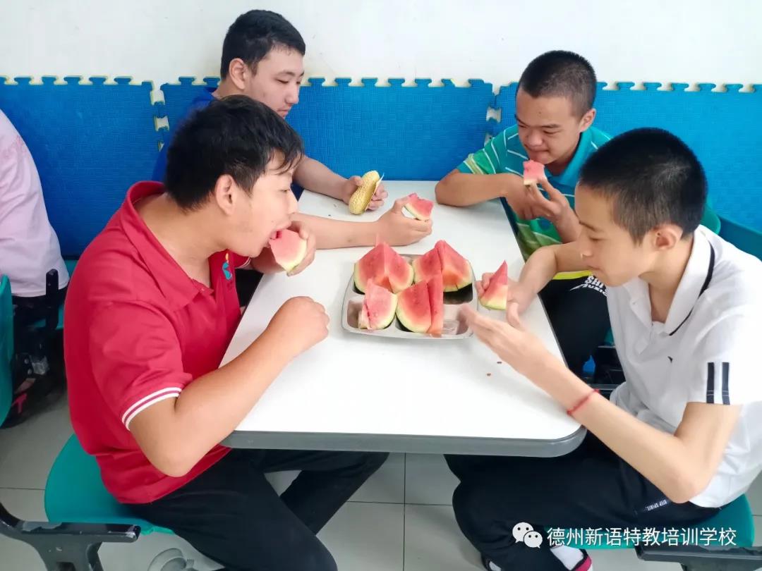 一聽到夏天,腦海里首先浮現(xiàn)出來的就是大西瓜了吧!解熱又解渴,甜到心窩窩~今天,德州新語特教培訓(xùn)學(xué)校北校區(qū)的孩子們太幸福啦,我們的鄰居--中石油的叔叔阿姨為同學(xué)們送來了好多好多大西瓜,敞開肚皮吃吧~