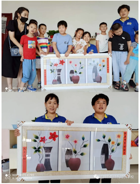 成長(zhǎng)班的家長(zhǎng)們?yōu)槔蠋焸冇H手制作了鉆石繡。