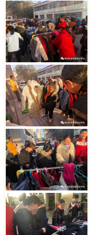 叔叔阿姨還為大家?guī)砹艘路?,每件都洗得干干凈凈,大家在挑選心儀的衣服。