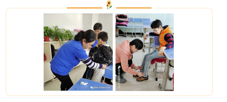 老師們得知旭旭的情況,都特別重視,課間操會(huì)有老師一對(duì)一輔助旭旭下樓,上廁所老師也會(huì)格外關(guān)注旭旭,有時(shí)旭旭控制不住拉尿在褲子里,助教老師蔡老師和班老師總會(huì)像媽媽一樣為孩子換下來(lái),洗干凈。