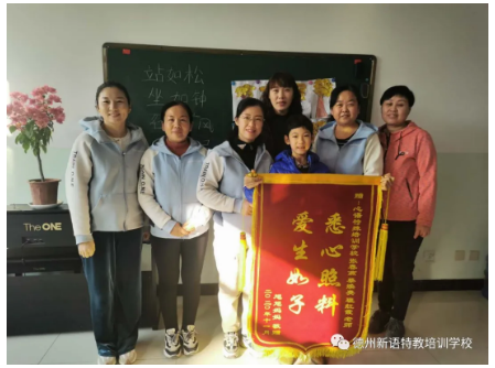 2020年11月9日上午,德州新語(yǔ)特教培訓(xùn)學(xué)校四年級(jí)一班旭旭和媽媽一起為學(xué)校送來(lái)錦旗,感謝老師們對(duì)旭旭的悉心照料。