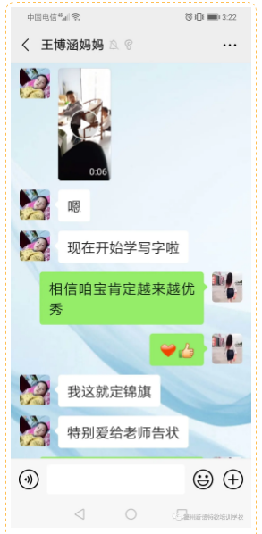 家長的肯定是我們前進(jìn)的動力,是對我們工作無言的鼓勵,祝涵涵越來越棒;相信在我們共同的努力下,會有越來越多的寶貝走進(jìn)普校融合,更多的“星兒”找到屬于自己的一片天!