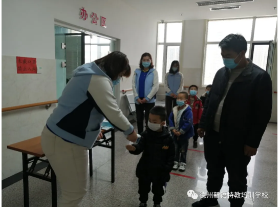 寶貝們有序測(cè)溫進(jìn)入教學(xué)場(chǎng)地