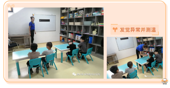 初測(cè),復(fù)測(cè)后發(fā)現(xiàn)幼兒體溫高于37.3,老師第一時(shí)間將情況報(bào)告給校區(qū)負(fù)責(zé)人王藝然老師,王老師則第一時(shí)間將情況反應(yīng)給疫情防控組,并聯(lián)系家長(zhǎng)告知幼兒情況。