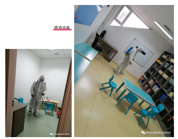 學(xué)校消毒人員第一時(shí)間將高溫幼兒經(jīng)過的所有路徑和場(chǎng)所進(jìn)行84消毒液噴灑消毒。