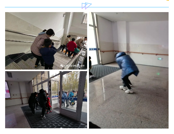 家長(zhǎng)孩子們迅速做出反應(yīng),彎腰低頭捂口鼻有序撤離教室。