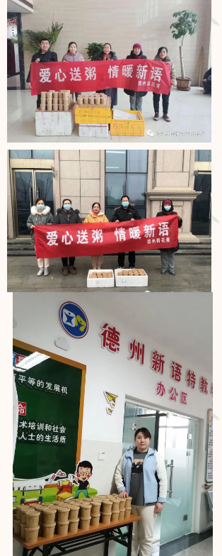 2021年1月20日臘八節(jié),一大早,德州雨花齋志愿者分別走訪了德州新語(yǔ)康復(fù)中心校區(qū)、東海校區(qū)、樺林校區(qū)三個(gè)校區(qū),給孩子們送上熱騰騰的臘八粥,祝孩子們節(jié)日快樂(lè),事事“粥”全!