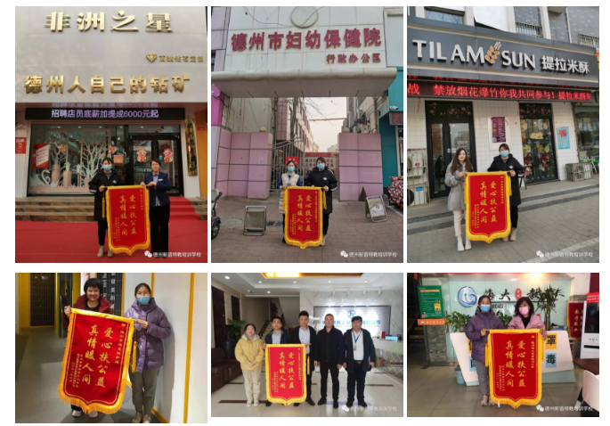 2020年,共有33家愛心企業(yè)及愛心人士走進新語,為寶貝們送來溫暖和關(guān)懷,為了感謝各位愛心企業(yè)和愛心人士對學校和孩子們的關(guān)心和幫助,2021年1月21日--22日,新語的三位校區(qū)負責人于娟、曲鳳英、王藝然對2020年給予學校關(guān)心和幫助的愛心企業(yè)和愛心人士贈送錦旗。
