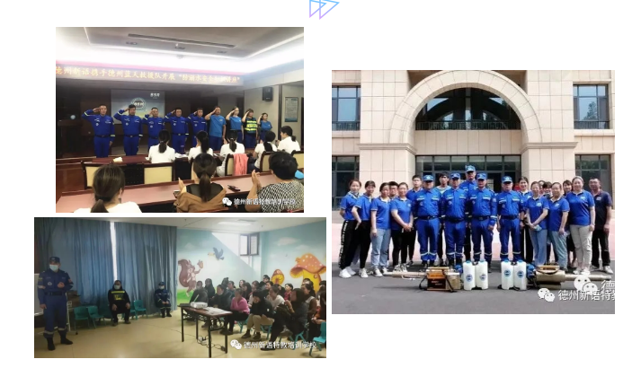 德州救援隊自2018年起開始關(guān)注德州新語,多次來到學(xué)校為老師及家長進(jìn)行防溺水、消防等知識講座,新冠疫情以來更是主動承擔(dān)起學(xué)校的環(huán)境消殺工作。