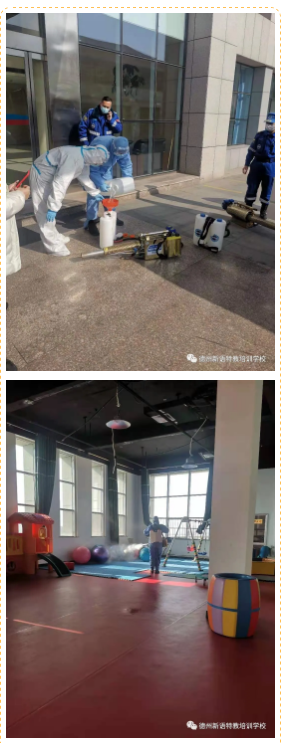 2021年1月23日上午,德州市紅十字藍(lán)天應(yīng)急救援協(xié)會一行十人依次走進(jìn)德州新語康復(fù)中心校區(qū)、東海校區(qū)、樺林校區(qū)三個校區(qū),對學(xué)校教學(xué)場地展開仔細(xì)消殺,為師生及家長的健康筑起安全屏障。