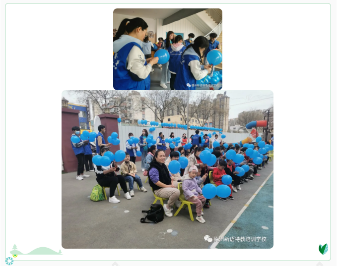 這是一場暖意融融的運動會,志愿者和老師們把對星寶們的關(guān)愛化成藍(lán)色行動,提前準(zhǔn)備精心布置會場,把活動現(xiàn)場打造成一片藍(lán)色的海洋。藍(lán)馬甲,藍(lán)氣球,藍(lán)絲帶,藍(lán)色就是我們的主題色!