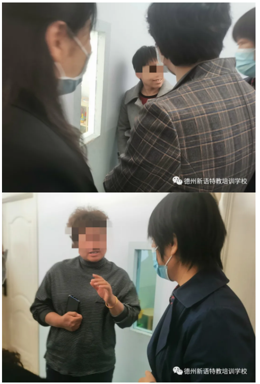 劉理和韓理面對(duì)面與家長溝通孩子們?cè)谛?祻?fù)訓(xùn)練的情況,媽媽們對(duì)新語的康復(fù)訓(xùn)練都給予了肯定!