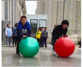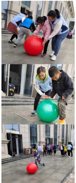 大蓉球接力賽,看誰滾球最熟練,速度最快~這個大球有時候還不聽話呢,還好有老師們幫助我們!