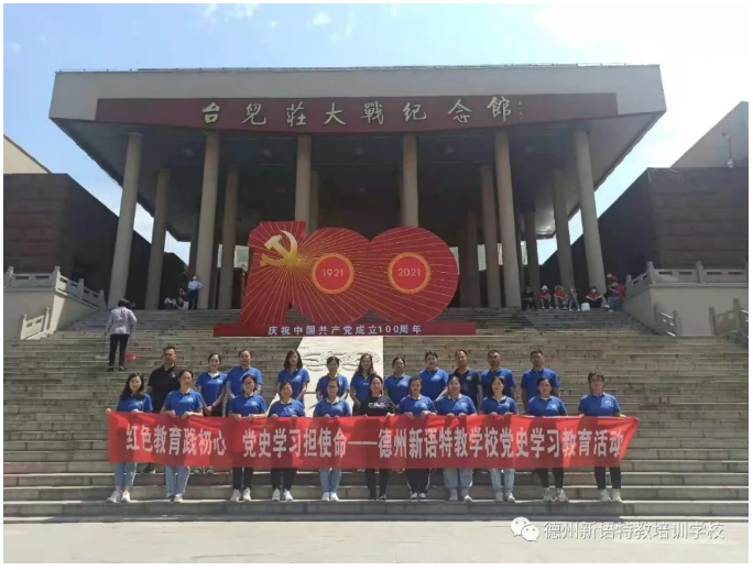 為慶祝建黨一百周年,把黨史學(xué)習(xí)教育與立德樹(shù)人的根本任務(wù)結(jié)合起來(lái),2021年6月19日--20日,在黨支部書(shū)記裴婧老師的帶領(lǐng)下,德州新語(yǔ)特教培訓(xùn)學(xué)校的黨員、黨員發(fā)展對(duì)象及入黨積極分子共計(jì)22人前往棗莊開(kāi)展“學(xué)黨史 明初心 知使命”主題教育活動(dòng)。