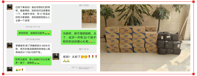 了解到學(xué)校有很多貧困家庭,馮老師組織金剛書院的學(xué)員們?yōu)樵谛:退徒痰呢毨Ъ彝ゾ栀?zèng)了過(guò)冬的衣物,幫助大家度過(guò)寒冬。