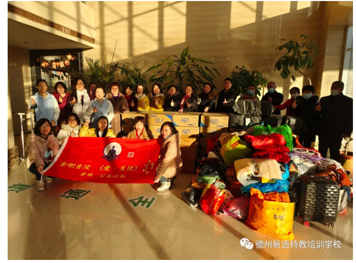 2021年12月17日下午,金剛書院馮書玲老師與愛心人士們?cè)俅蝸?lái)到德州新語(yǔ)特教培訓(xùn)學(xué)校,為孩子們送來(lái)冬天的衣物,并為重度殘疾的貧困送教學(xué)生家庭送來(lái)了64箱尿不濕。