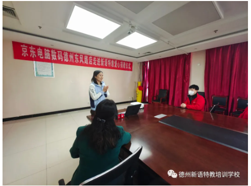 2021年11月30日下午,愛心企業(yè)京東電腦數(shù)碼東風路店王總攜員工一起來到德州新語特教培訓學校,為孩子們帶來暖暖公益活動的學習用品。李國俊校長與校區(qū)負責人于娟老師,曲風英老師全程陪同。