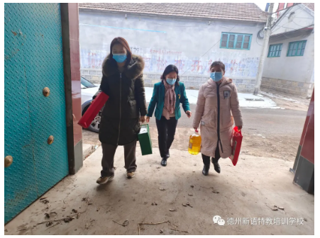 2022年1月24日,德州新語特教培訓學校李國俊校長帶著老師們一起去貧困殘疾人房啟孝和韋利森家中,送上春節(jié)的禮物與祝福。