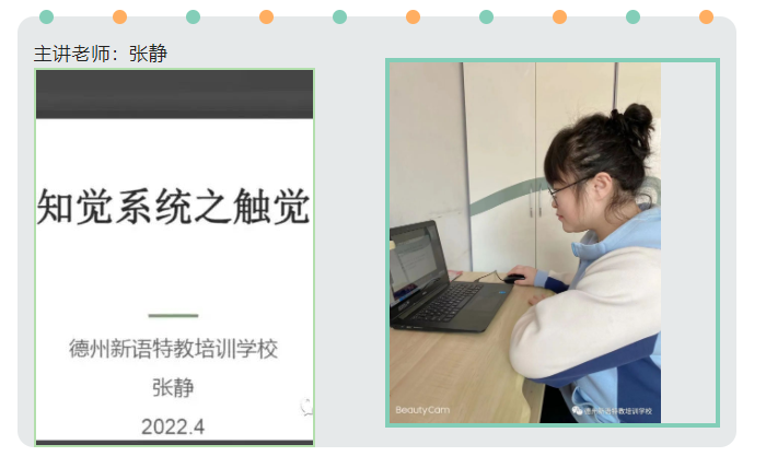 4月23日,德州新語每月一次的家長培訓(xùn)繼續(xù)線上進(jìn)行。今天的培訓(xùn)內(nèi)容是《知覺系統(tǒng)之觸覺》,由學(xué)校幼小銜接班班主任張靜老師主講。