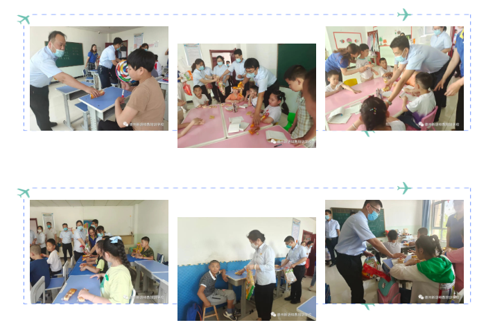 叔叔阿姨們一起走進(jìn)每間教室,和孩子們近距離接觸,看到這么多叔叔阿姨的到來,孩子們都開心極啦!熱情又大聲地和大家問好。叔叔阿姨還為孩子們帶來了美味的零食和學(xué)習(xí)用品作為六一兒童節(jié)的禮物~