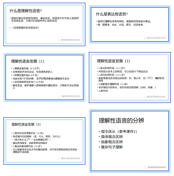 李老師首先闡述了理解性語言和表達(dá)性語言的概念,聯(lián)系實(shí)際例子進(jìn)行講述,進(jìn)而與一般孩子理解性語言的發(fā)展規(guī)律進(jìn)行對比,深入淺出,簡單易懂。