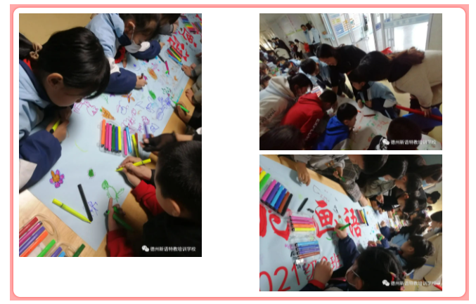 互動結(jié)束后,康博同學(xué)們和新語寶貝一起繪畫長卷“我與星星的畫語”,同在藍(lán)天下,筑夢共成長!