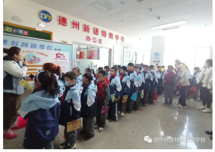 康博小學(xué)二年級3班47名小同學(xué),由班主任吳老師帶隊來到新語特教學(xué)校。新語校區(qū)負(fù)責(zé)人王藝然老師為來訪的同學(xué)老師及部分隨行家長介紹學(xué)校發(fā)展和心智障礙兒童的特點(diǎn)。