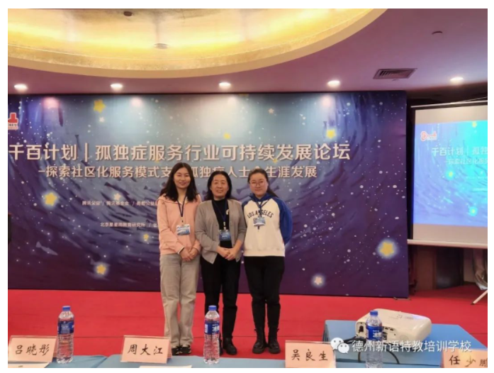 2023年3月25日-26日,由北京星星雨教育研究所,北京心盟孤獨(dú)癥兒童關(guān)愛中心,心盟孤獨(dú)癥網(wǎng)絡(luò)聯(lián)合主辦的"千百計(jì)劃 l 孤獨(dú)癥服務(wù)行業(yè)可持續(xù)發(fā)展論壇--探索社區(qū)化服務(wù)模式支援孤獨(dú)癥人士全生涯發(fā)展"在北京舉辦。心盟成員機(jī)構(gòu)山東德州新語特教培訓(xùn)學(xué)校李國(guó)俊校長(zhǎng),于娟,李娜三位特教老師共同參加了本次研討會(huì)。