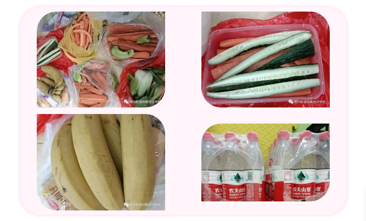 老師孩子們準備好各種蔬菜,為投喂動物做準備,食物和水也是必不可少,用于孩子們中途補充能量。感謝鑫鑫爸爸為孩子們準備的礦泉水!
